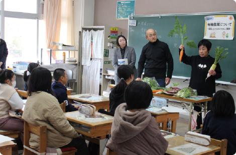 オーガニックのOを連想する円の中に、生態系の循環と農都を表現しているんだよ。